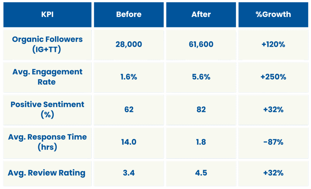 Boost organic reach, lift engagement, improve online reviews, and reduce average response time.