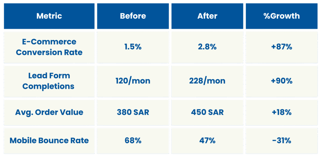 • Mobile-first fixes (65% of KSA traffic is mobile).